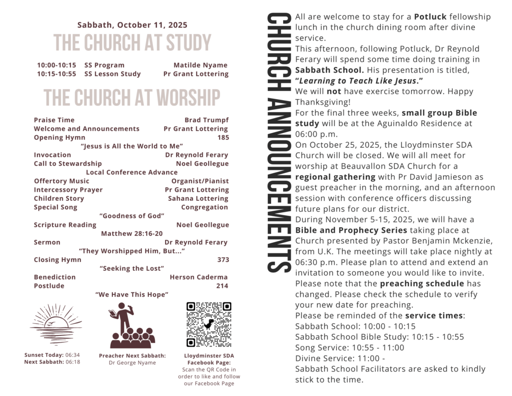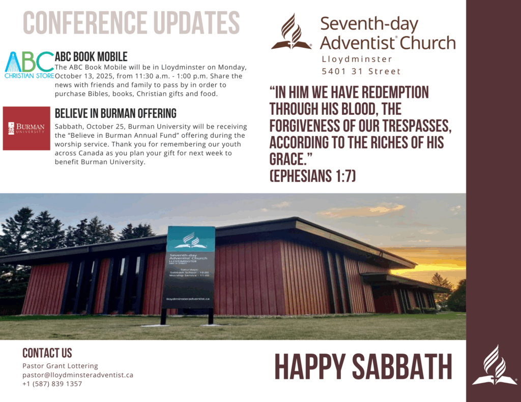 Welcome to the Lloydminster Seventh-day Adventist Church in Lloydminster, AB. We are a Christian community and would love to have you join our family. To learn more about what we believe you can visit our About Us page. Please join us for Bible study, worship, and prayer.